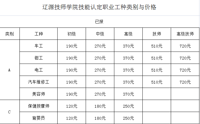 職業(yè)工種類別及收費(fèi)標(biāo)準(zhǔn)